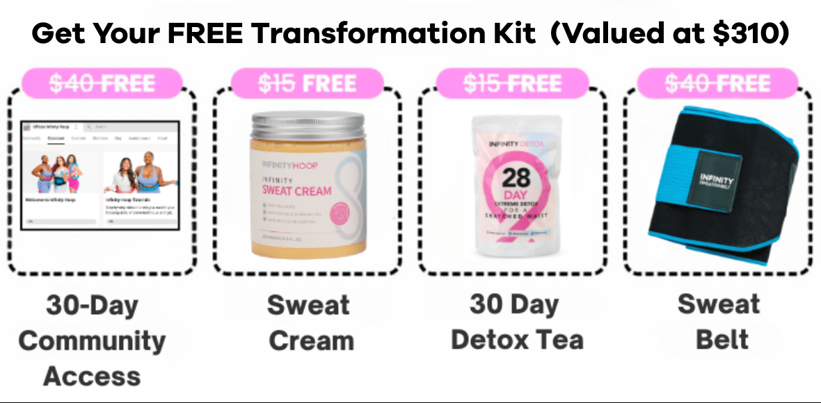 This isn’t just a workout—it’s a full-body, full-support transformation. You’ll hoop it out daily with high-energy cardio that melts fat and sculpts your waist. The sweat belt + cream combo? That’s your waist-snatching secret weapon. Add in our detox tea working behind the scenes to beat bloat and boost metabolism, and your body doesn’t stand a chance. You’ll track every win, feel the results fast, and stay locked in with a fired-up community of women who are spinning, sweating, and showing up with you. This challenge brings the heat—and the results.